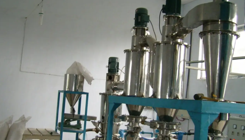 气流粉碎机是指利用高压气体产生的高速气流,使物料颗粒相互冲击,或使物料颗粒与固定板相互冲击,达到粉碎物料的目的的机械设备。气流粉碎机可一次生产多个粒度段的商品,具有粉碎强度高、粉尘少、噪音低、维护方便、操作简单等优点。广泛应用于矿业、化工、冶金、制药、瓷器、新材料、食品等行业。